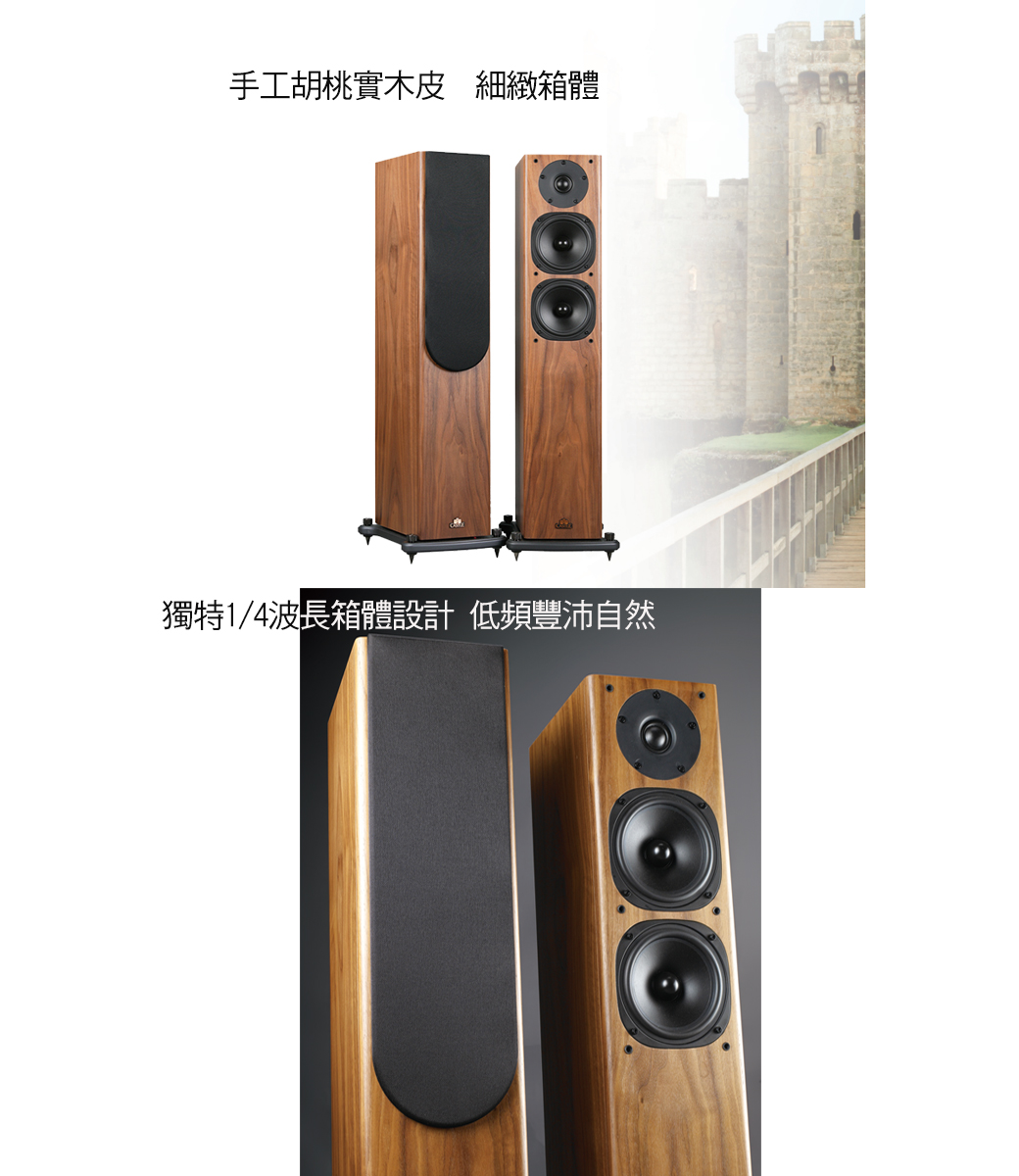 如今,Castle城堡音響已代表著揚聲器的最高聆聽標準,專為有獨到眼光的高傳真音響享受及愛好者而設計;每個單體和原木箱體都經嚴謹細緻的手工打磨工藝精心雕琢,堪稱聲學技術和材料的最完美結晶,無可挑剔。