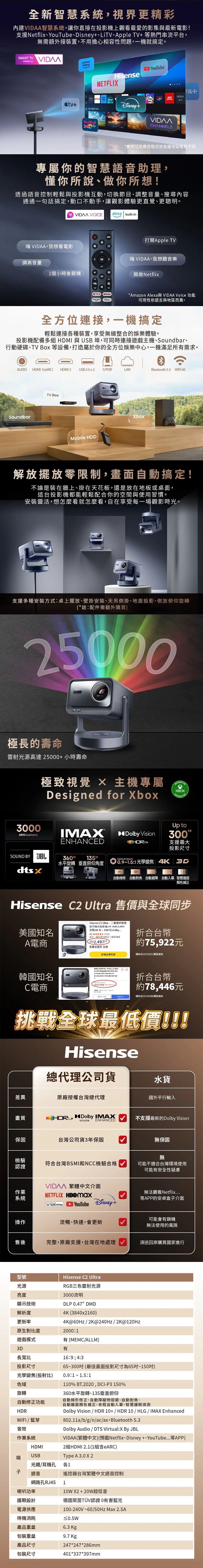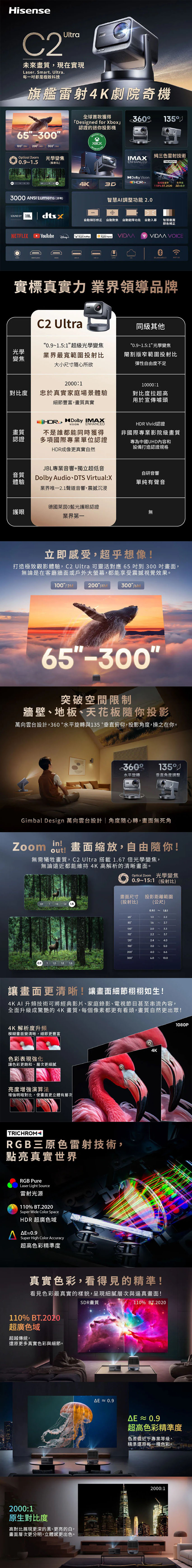 🟢3,000超高流明亮度,可投射65~300吋