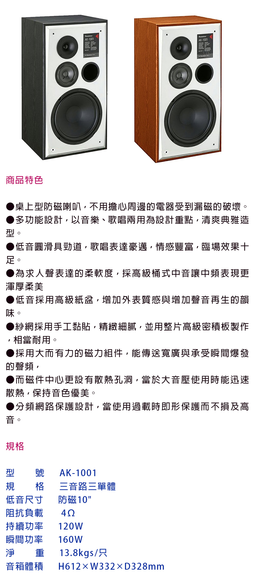 ◎分頻網路保護設計,當使用過載時即形保護而不損及高音