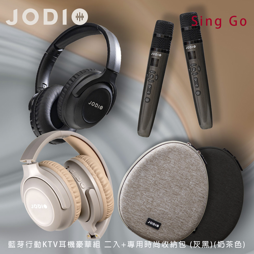【澄名影音展場】JODIO Sing Go 藍芽行動KTV耳機豪華組 二入 (酷黑)(奶茶色)+專用時尚收納包(灰黑)(奶茶色) (編號:JO-AV-HKTV2LSBW2)