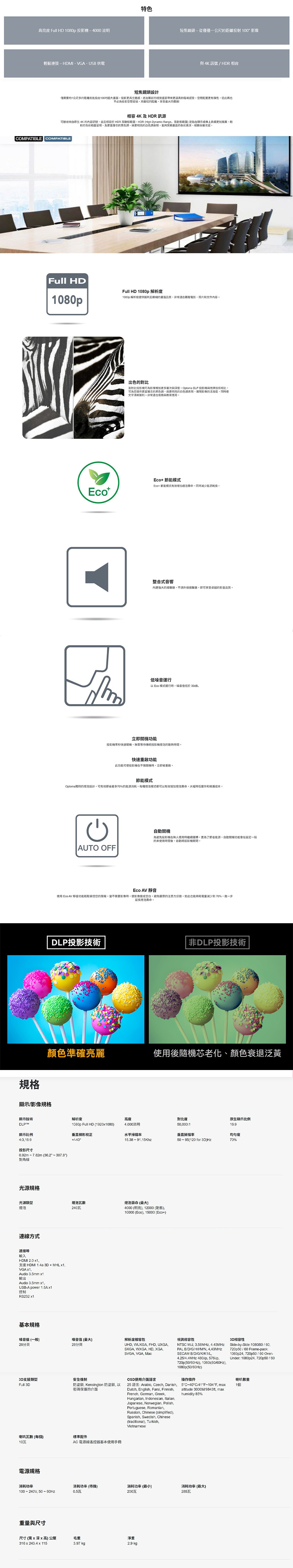 ▲高亮度 Full HD 1080p 投影機 – 4000 流明