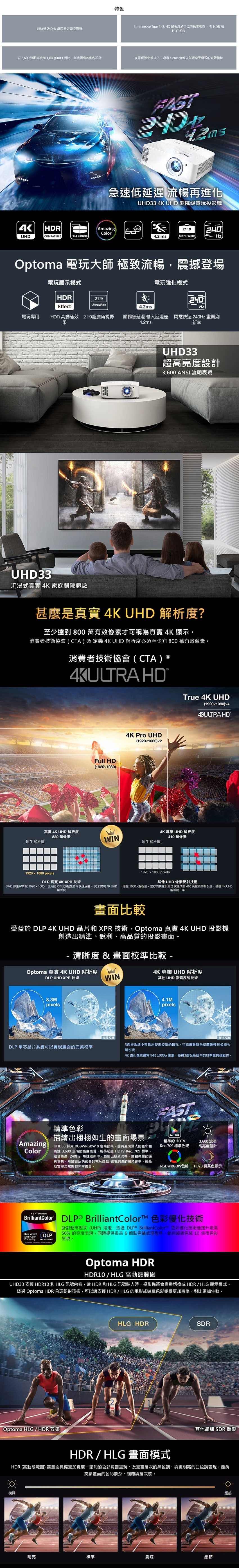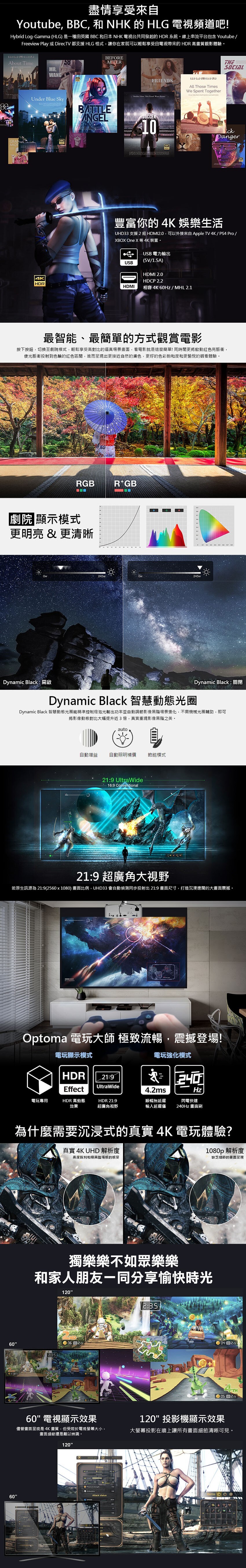▲BImmersive True 4K UHD 解析度結合完美像素對齊 -與 HDR 和 HLG 相容