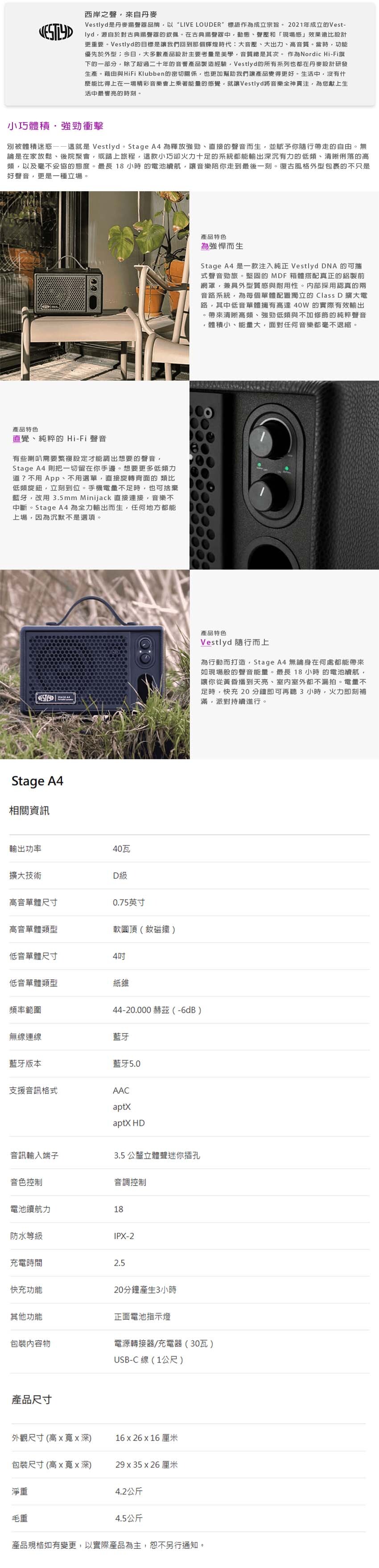 .4 吋低 / 中音單體+0.75 吋軟半球高音