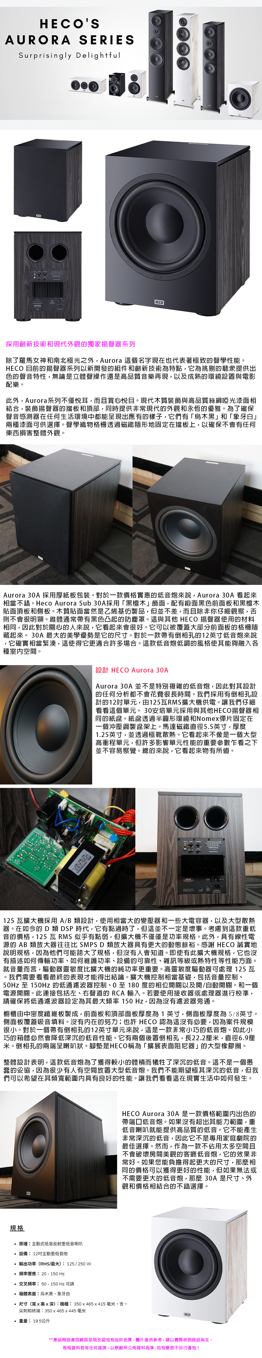 ● 強勁的主動式低音炮,配備 30 公分大功率低音揚聲器和高性能放大器