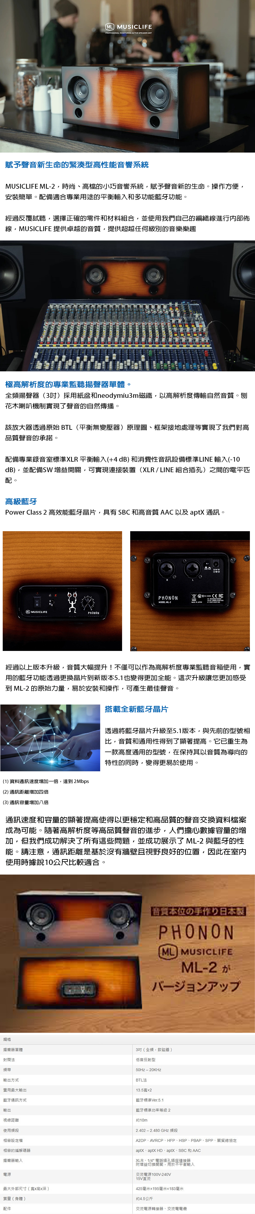 ● 可切換專業 XLR 平衡輸入 (+4 dB) 和標準 LINE 輸入 (-10 dB)
