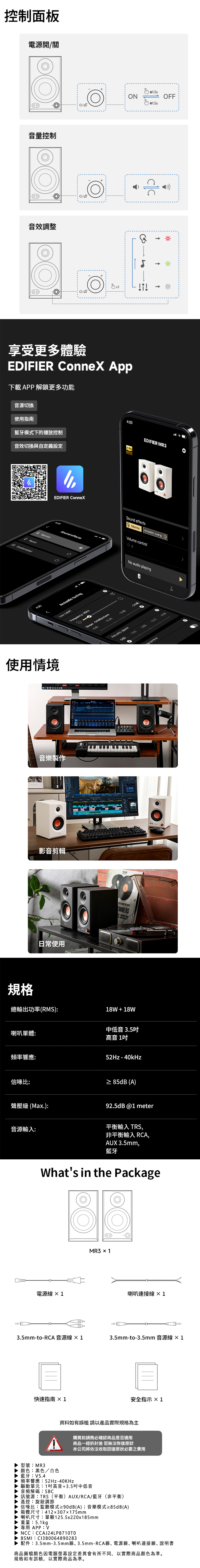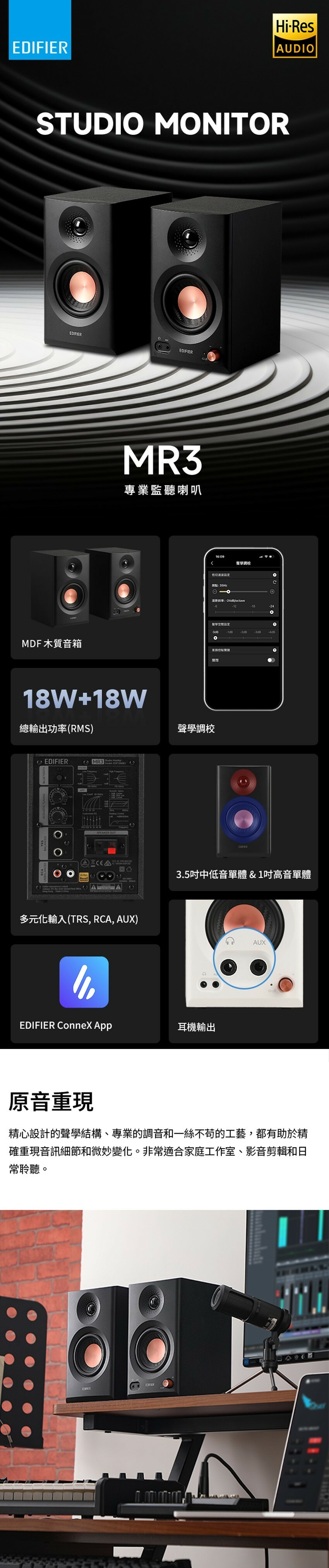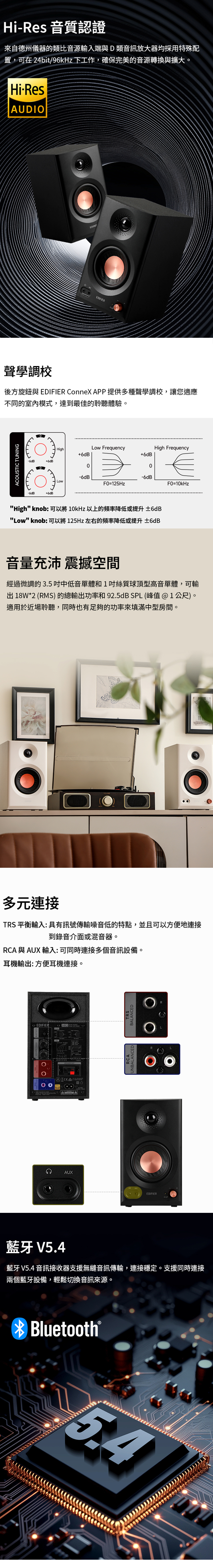 . 專業連接介面:TRS / RCA / AUX/藍牙/耳機輸出