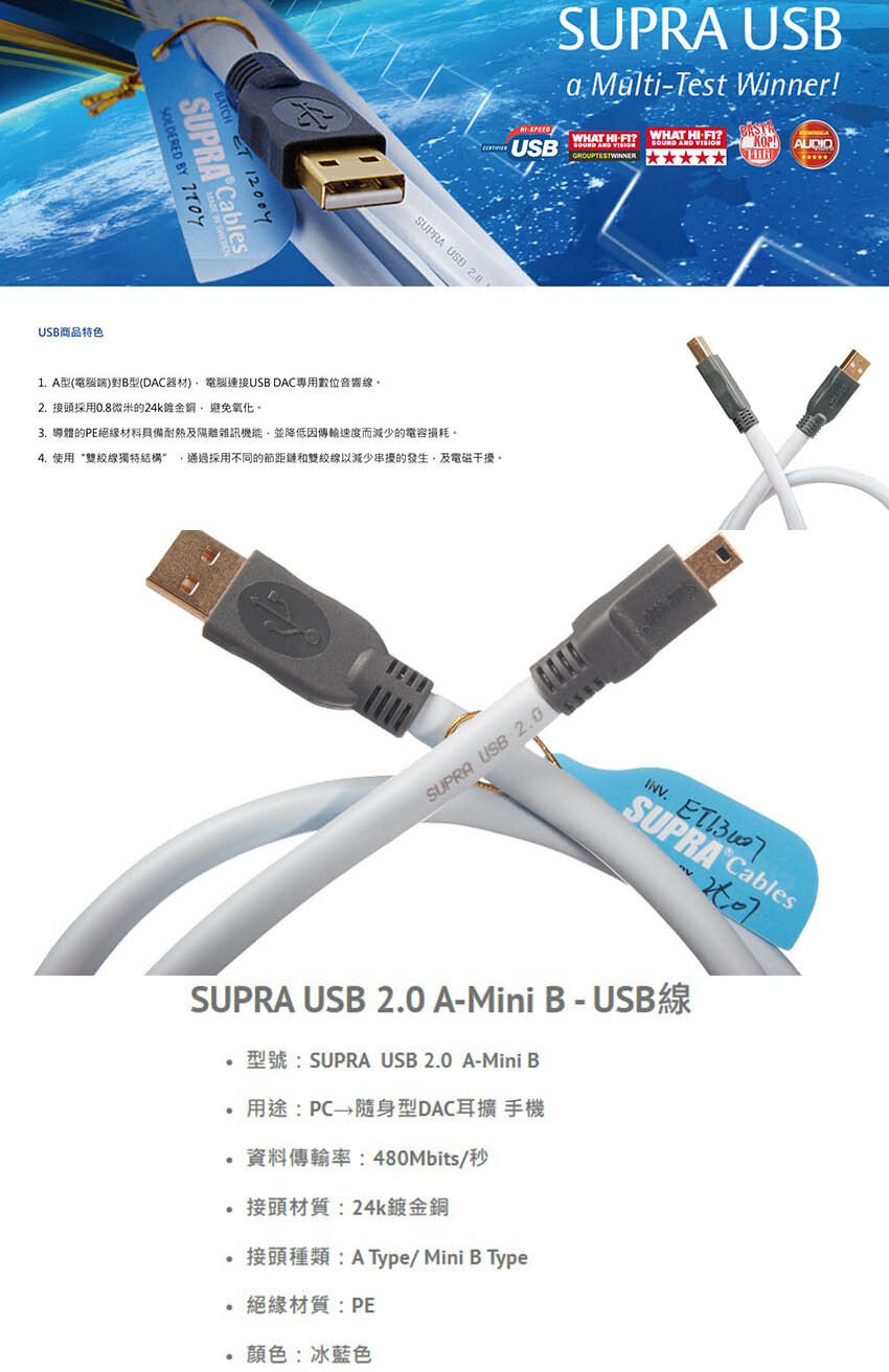 ■ A型(電腦端)對B型(DAC器材),電腦連接USB DAC專用數位音響線
