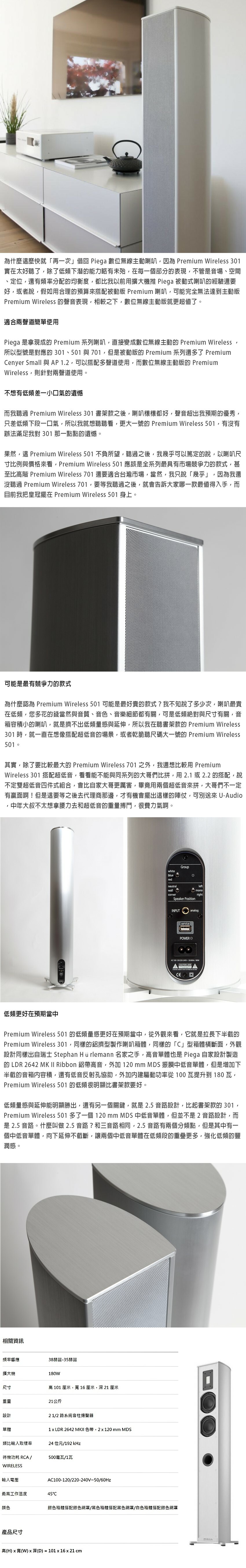【澄名影音展場】瑞士 PIEGA Premium Wireless 501 主動無線落地式揚聲器 公司貨 黑/白色款