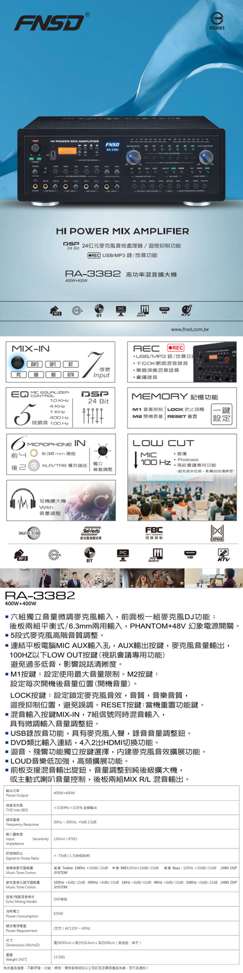 ◆六組獨立音量微調麥克風輸入:前4後2(平衡式/6.3mm兩用輸入)