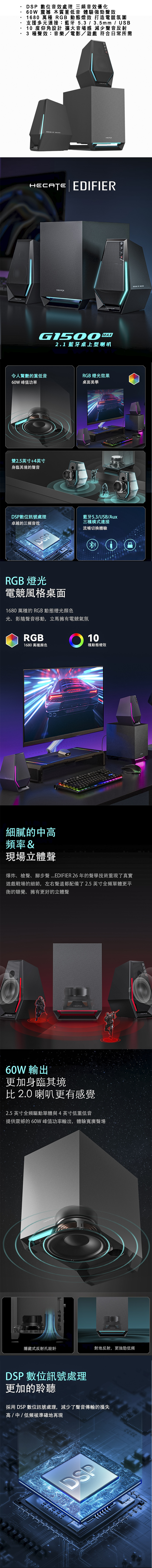 . 60W 震撼 木質重低音 體驗強勁聲效