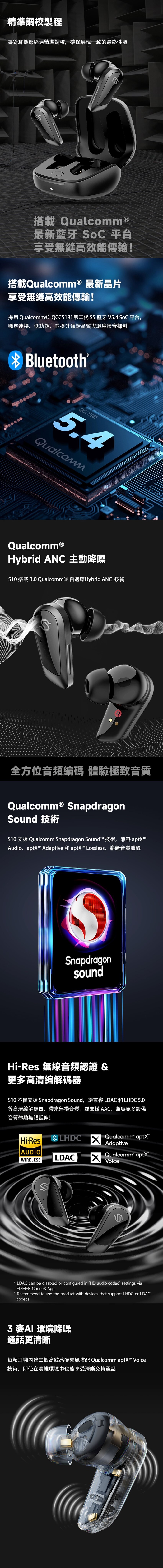 .支援 Snapdragon Sound™ 、aptX™ Adaptive 與 aptX™ Voice 技術支持