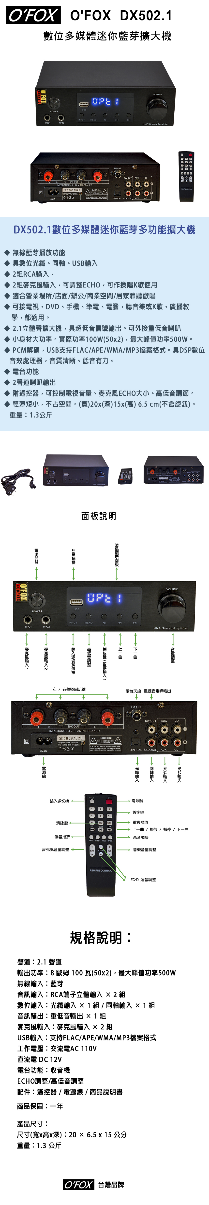 ◆ 多功能輸入: 藍芽/光纖/同軸/USB/ AUX輸入